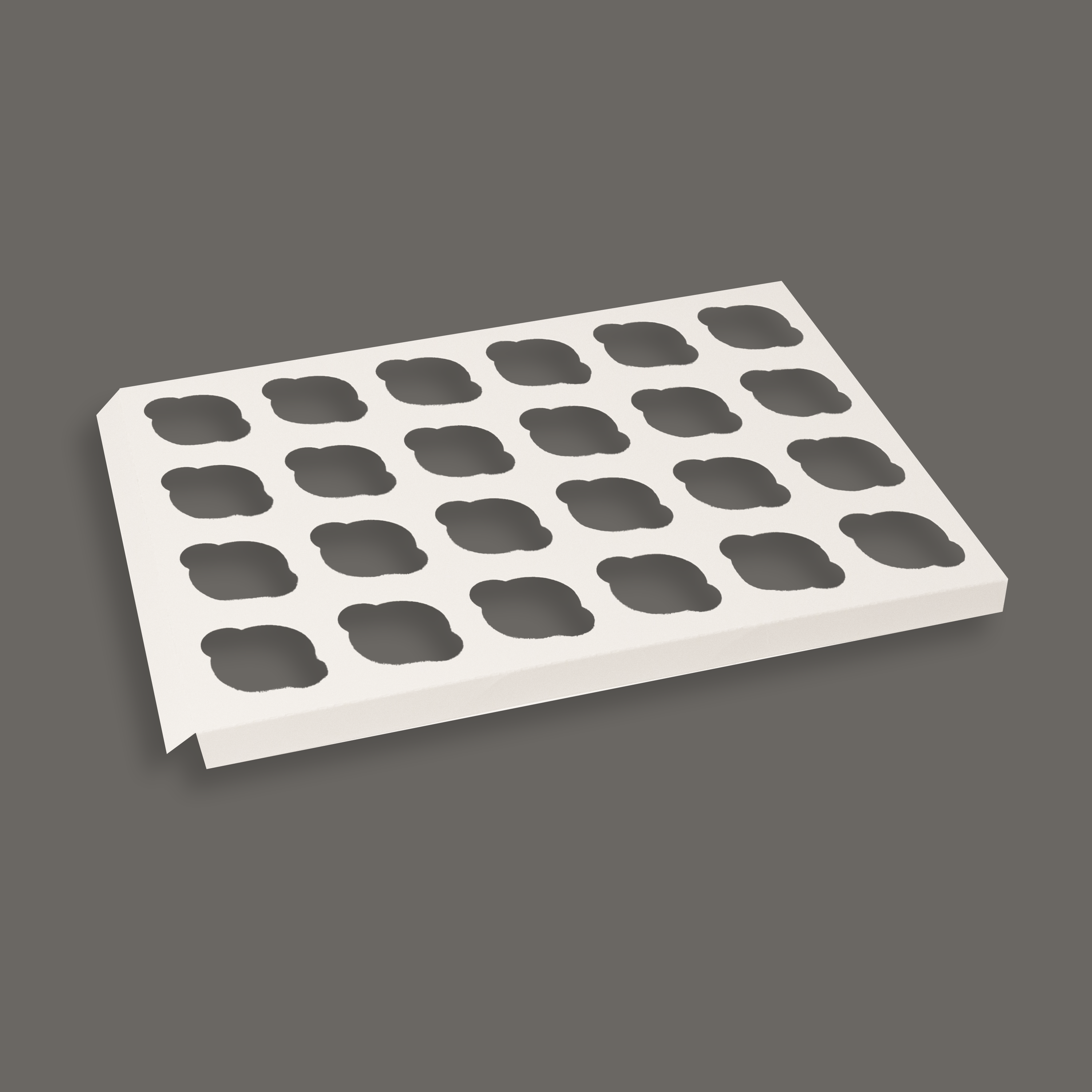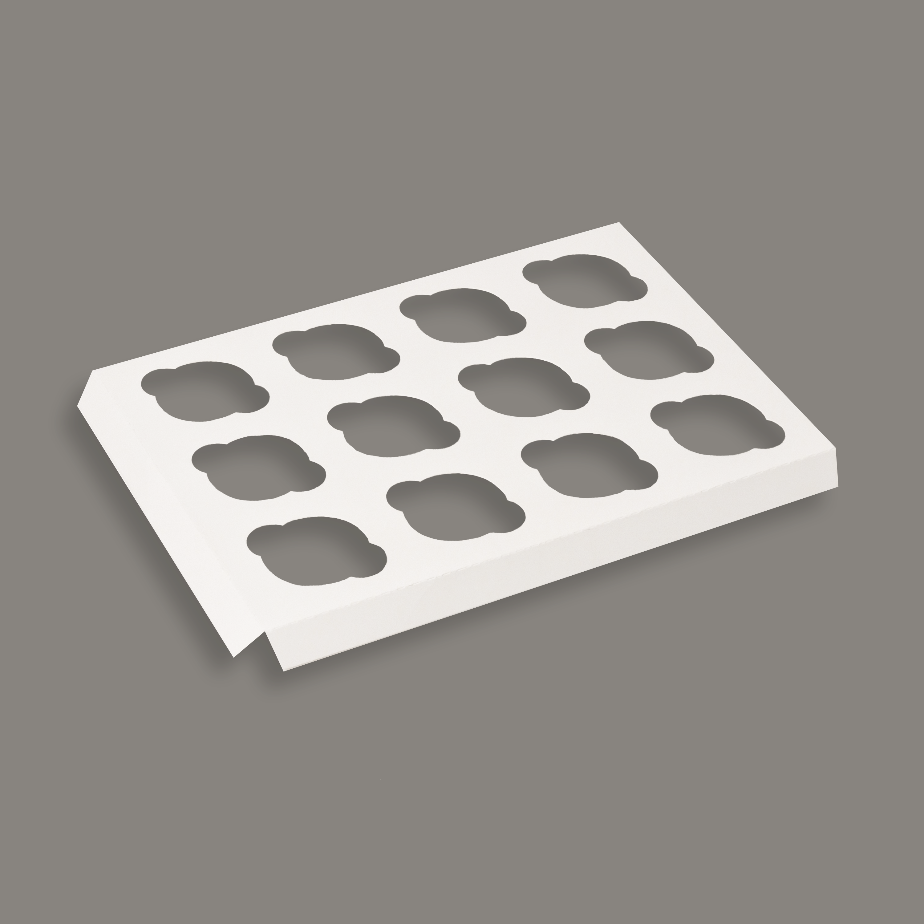 Denne esken vår er utviklet for å passe til 12 stk cupcakes eller 24 stk mini cupcakes.