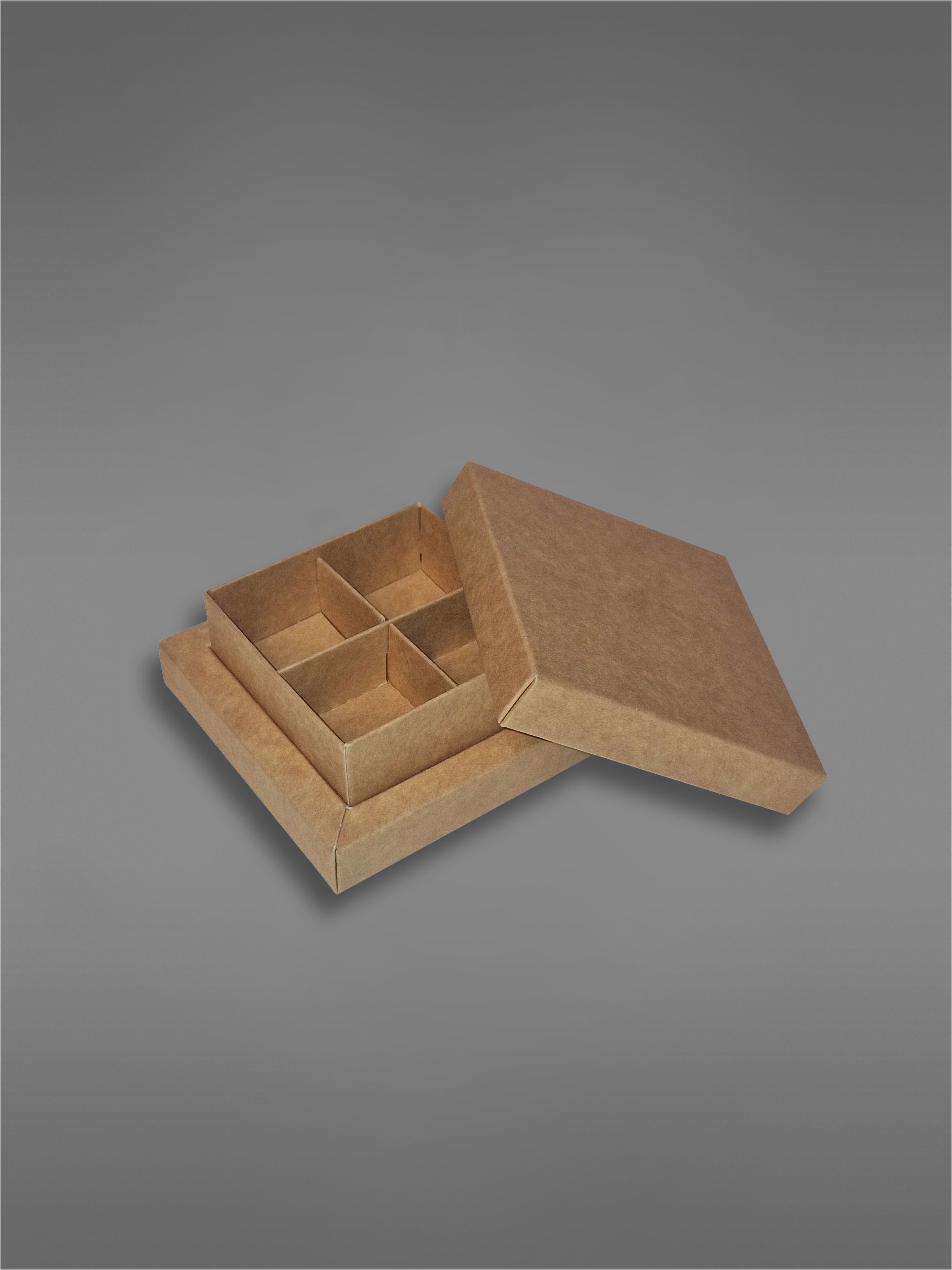 Det er plass til 4 biter konfekt i esken ved bruk av innlegg, men esken kan også fint brukes uten innlegg.