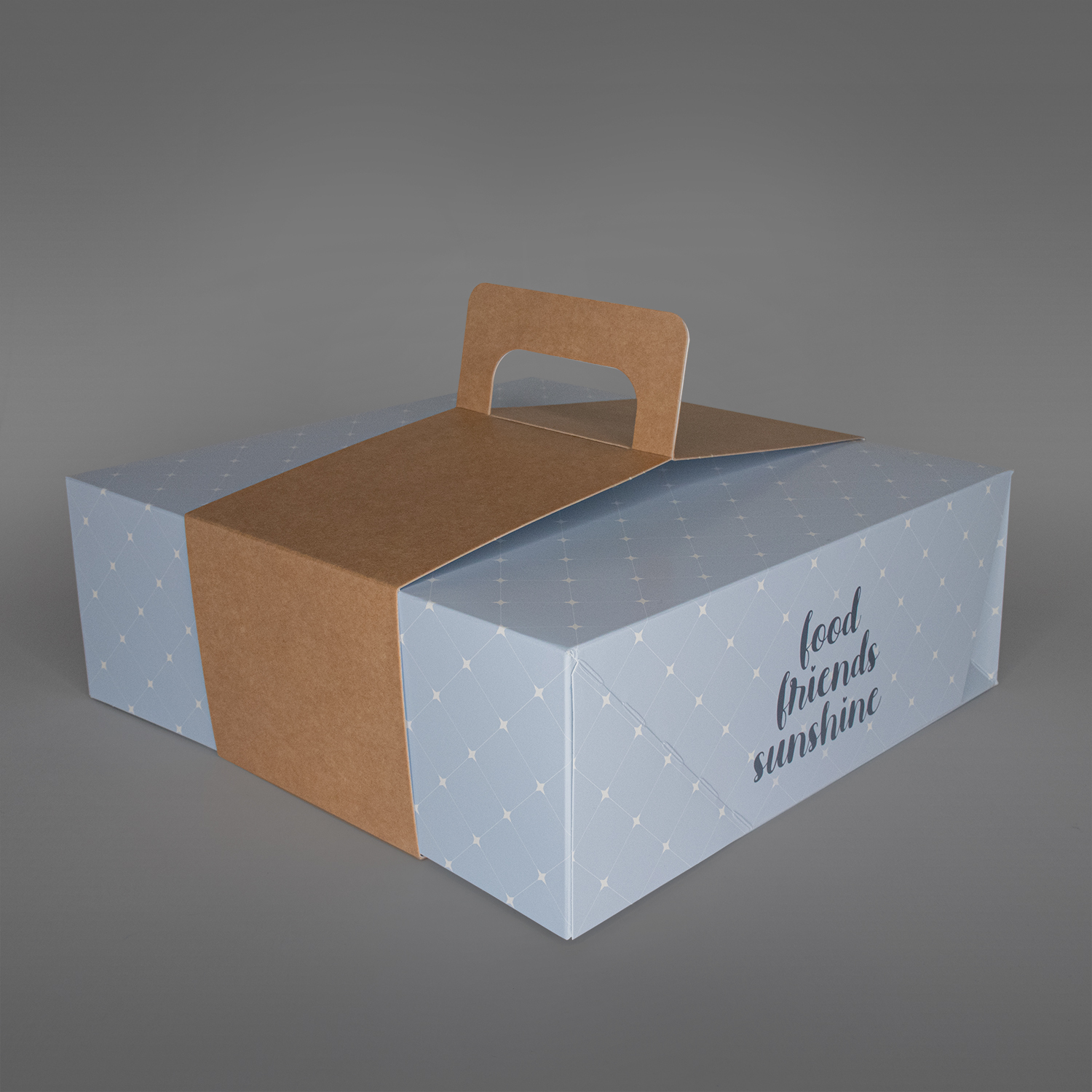 Til denne esken følger det med et praktisk bærehåndtak i brun kartong.